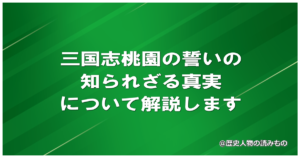 この誓いは、彼らの信義や団結力の象徴であり、三国志の物語を語るうえで欠かせない重要なポイントとなりました。