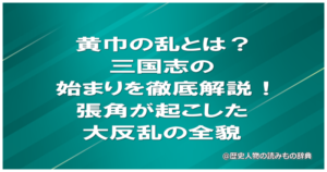 黄巾の乱とは?三国志の始まりを徹底解説!張角が起こした大反乱の全貌 黄巾の乱ってどんなことがキッカケだったの? 張角が掲げたスローガンの意味を教えて この記事では、こんな疑問にお答えしますね。 この記事で分かること 黄巾の乱が起...